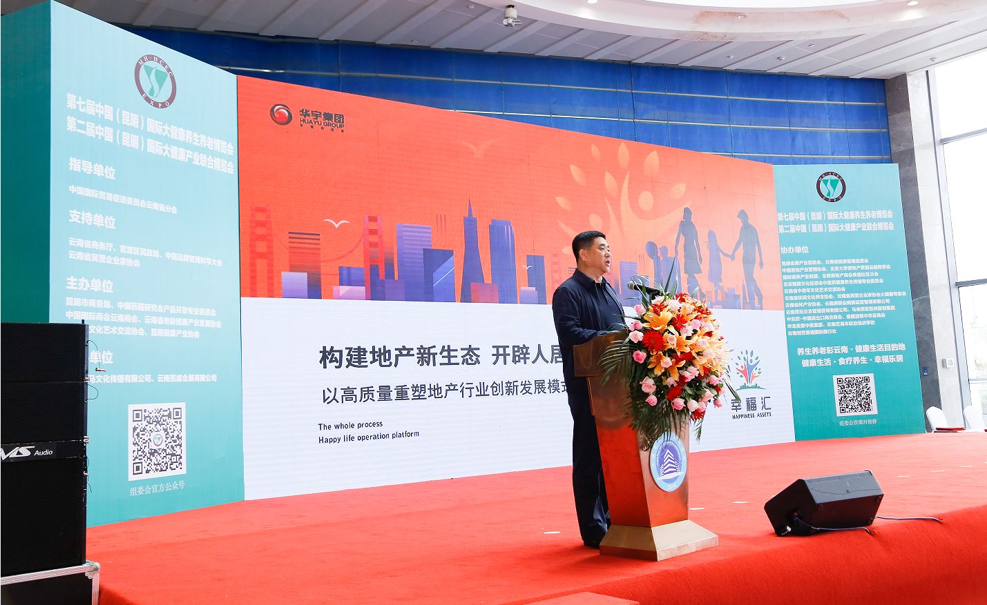 2023年10月14-15日(rì),由中國房地産業營銷協會、全聯房地産商會幸福社區分會、國際康養産業聯盟、昆明國際大(dà)健康博覽會組委會主辦,中國房地産業營銷聯盟、雲南(nán)房聯會、中商聯盟協辦,雲南(nán)省民(mín)政廳、雲南(nán)省商務廳、雲南(nán)省貿促會、昆明市大(dà)健康辦、昆明市文旅局支持的2023年度中國房地産業營銷協會年會暨2023中國房地産創新發展論壇、第三屆中國大(dà)健康産業創新發展高峰會在雲南(nán)昆明滇池國際會展中心隆重舉行,來(lái)自(zì)房地産、文旅、大(dà)健康等領域的500餘名領導、專家學者、企業家莅臨會議(yì)現場。